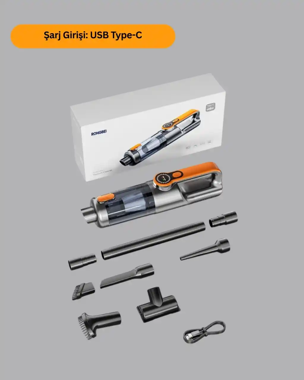 Güçlü motor yapısına sahip bu mini el süpürgesi, kuru ve sıvı kirleri saniyeler içinde temizleyerek etkili temizlik performansı sunar. Toz, saç, kırıntı, evcil hayvan tüyü ve dökülen sıvılar gibi birçok kir türünde yüksek verim sağlar. Set içerisinde bulunan numaratör hediyesi.USB Type-C hızlı şarj özelliği ile kısa sürede şarj olur ve 25–30 dakika boyunca kesintisiz çalışabilir. Kablosuz yapısı sayesinde dar alanlarda ve araç içinde kullanım kolaylığı sağlar.5 başlık atı ile donatılmış cihaz; dar uçlu başlıkla detay temizliği, fırçalı başlıkla hassas yüzey temizliği, geniş başlıkla genel yüzey temizliği, yuvarlak başlıkla köşe temizliği ve esnek hortumla zor ulaşılan yerlerde üstün performans sunar.Yıkanabilir toz haznesi hijyenik kullanım sağlar. Kompakt boyutu sayesinde çekmece, torpido veya çantalarda kolayca saklanabilir.