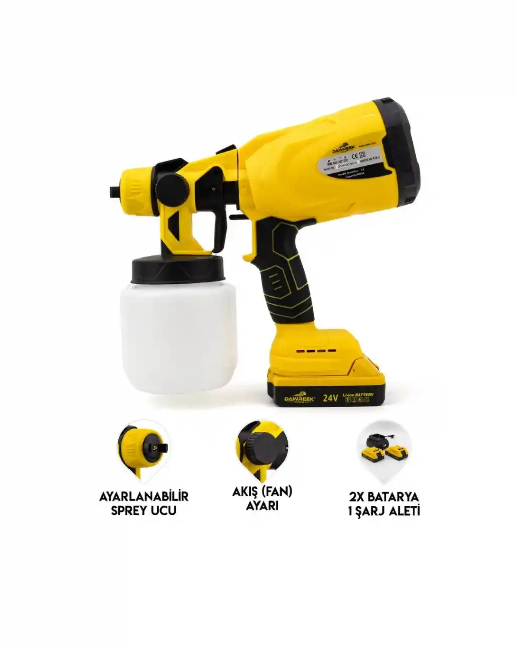 Şarjlı Püskürtme Tabancası, hobi projeleri ve DIY çalışmalarla ilgilenen kullanıcılar için ideal bir boyama çözümüdür. Kolay kullanımı ve akülü yapısı sayesinde hem yeni başlayanlar hem de deneyimli kullanıcılar için rahat bir deneyim sunar. Dekoratif objelerden ahşap projelere kadar geniş bir kullanım alanına sahiptir.Ayarlanabilir sprey ve fan ayarı, boyanın yüzeye dengeli şekilde dağılmasını sağlar. Bu özellik, özellikle küçük ve detaylı çalışmalarda büyük avantaj sunar. Püskürtme tabancası, boya kontrolünü kullanıcıya bırakarak daha es ve temiz sonuçlar elde edilmesine yardımcı olur.Kablosuz çalışma özelliği, özgür hareket imkanı sağlar. Atölyede, balkonda veya bahçede rahatlıkla kullanılabilir. Ergonomik sap tasarımı, uzun süreli kullanımda bile konfor sunar. Dengeli yapısı sayesinde kontrol kolaylaşır ve uygulama sırasında hata payı azalır.DIY projelerinde sıkça kullanılan ahşap boyama, metal dekor boyama ve yenileme işlemleri için ideal olan bu ürün, zaman kazandırır ve profesyonel görünümlü sonuçlar sunar. Kolay temizlenebilir boya haznesi, proje sonrası hızlıca temizlenerek bir sonraki kullanım için hazır hale gelir.Şarjlı püskürtme tabancası, yaratıcılığını ortaya koymak isteyen kullanıcılar için pratik bir yardımcıdır. Hobi ve dekorasyon projelerinde fırça ve rulo zahmetini ortadan kaldırarak keyifli bir boyama deneyimi sunar. Temiz, hızlı ve kontrollü uygulama isteyen herkes için ideal bir tercihtir.