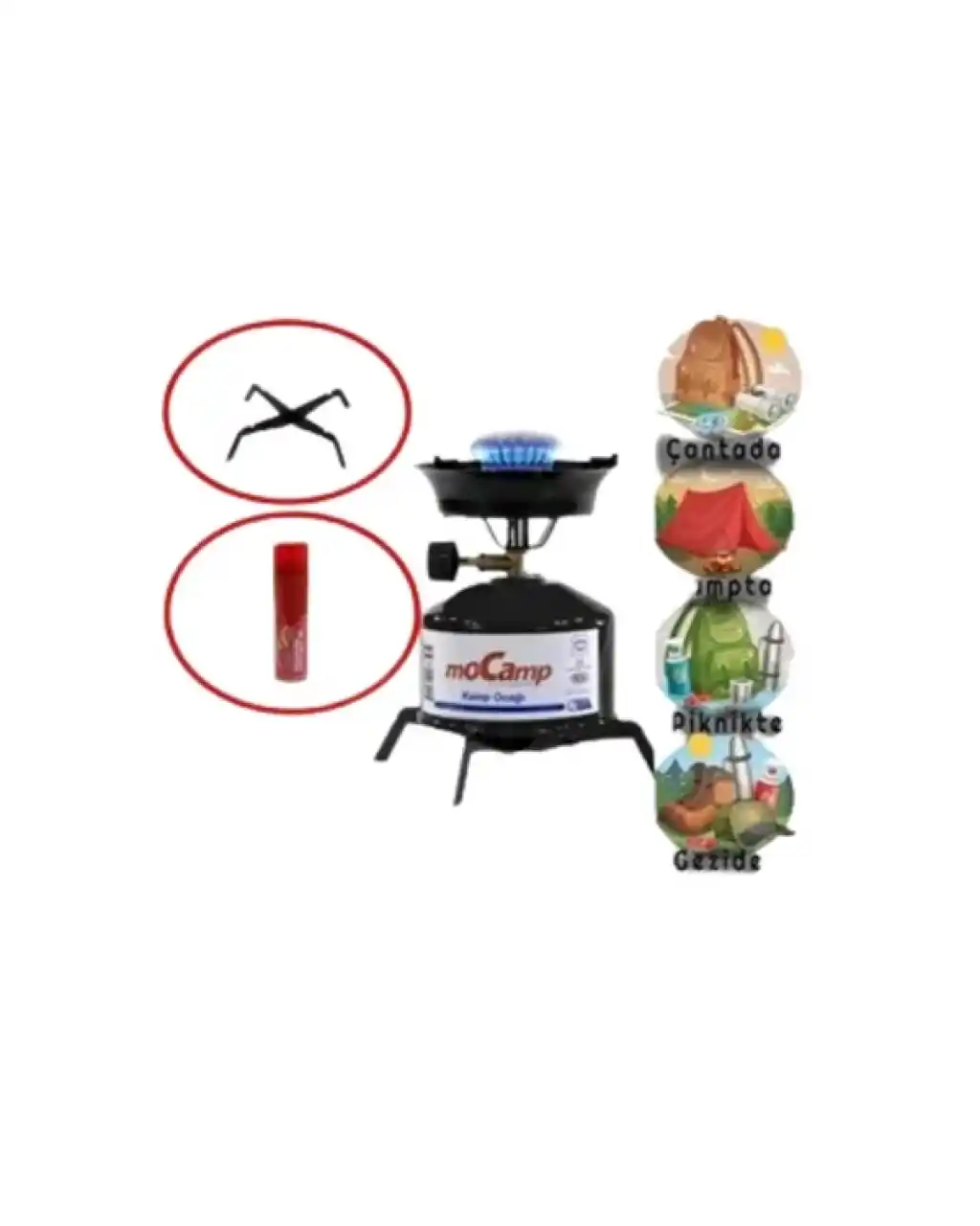 Bu taşınabilir kamp ocağı, outdoor aktivitelerinizde yanınızdan ayırmayacağınız, hem sağlamlığı hem de pratikliği ön planda tutan özel bir üründür. Metal gövdesi, fırın boya kaplaması ile korunarak paslanmaya karşı tam direnç gösterir. Bu sayede yoğun nem, yağmur ve diğer zorlu hava koşullarında dahi güvenle kullanabilirsiniz. 600°C’ye kadar dayanabilen yapısı, ateşin şiddetini ve ısısını maksimum seviyede tutarak uzun süreli, kesintisiz pişirme imkanı sağlar. Dış mekan kullanımı için tasarlanan bu ürün, dayanıklılık ve uzun ömürlü kullanım özellikleriyle öne çıkar.Ergonomik olarak dizayn edilen 12 cm çapındaki pişirme alanı, standart çaydanlık, tava ve tencerelerle uyumludur. Sadece 400 gram ağırlığında olması, kamp çantanızda ya da sırt çantanızda rahatlıkla taşınabilmesini sağlar. Ürünün kompakt ve hafif yapısı sayesinde kamp, balıkçılık, piknik ve doğa yürüyüşlerinde pratiklik ve kolaylık sağlar. Ayrıca, ayar düğmesi ile gaz akışı hassas şekilde kontrol edilir; böylece istediğiniz ateş gücünü kolayca ayarlayabilirsiniz.220 gram kapasiteli çakmak gazı tüpü ile çalışan ocak, bir tüp gazla 2,5 ile 4 saat arası yanma süresi sunar. Bu yüksek verimlilik, uzun süre doğada kalacak kampçılar için büyük avantaj sağlar. Tüp değiştirme ve dolum işlemi oldukça basittir; dolum kapağı sayesinde kolayca tüpü yerleştirebilir ve değiştirebilirsiniz. Bu da doğada kolaylıkla yakıtınızı yenilemenize imkan tanır.Ocak, sabit ve dayanıklı metal ayaklar üzerine oturtulmuş olup, pişirme sırasında maksimum stabilite sağlar. Böylece rüzgarlı açık alanlarda bile güvenle kullanabilirsiniz. Ateş yanarken ocağı hareket ettirmemeniz, güvenliğinizi sağlamak açısından önemlidir. Yüksek kaliteli metal malzeme ve sağlam yapısıyla kamp ortamında uzun yıllar boyu güvenle kullanabileceğiniz dayanıklı bir üründür.Ürün beş farklı canlı renk seçeneği ile sunulur: kırmızı, turuncu, mavi, yeşil ve siyah. Bu renk alternatifleri, kullanıcıların zevkine ve kamp ekipmanı uyumuna göre seçim yapmasına olanak tanır. Temizlenebilir ızgara yapısı sayesinde ocak, kullanım sonrası kolayca temizlenir ve hijyenik kalır. Bu da özellikle uzun kamp seyahatlerinde ürününüzün performansını ve dayanıklılığını artırır.Kullanım talimatları basit ve pratiktir. Gaz tüpü, ocak altındaki dolum kapağından yerleştirilir. Ayar düğmesiyle gaz akışı açılır ve ateş kolaylıkla yakılır. Pişirme süresince alevin şiddeti kontrol edilerek, yemeklerinizi istediğiniz gibi hazırlayabilirsiniz. Kullanım sonrası ayar düğmesini kapatmayı ve ocağı soğuduktan sonra saklamayı unutmayın. Doğrudan yüksek sıcaklıklara maruz bırakmamak ve düzenli temizlemek, ürünün uzun ömürlü olmasını sağlar.Sonuç olarak, bu kamp ocağı sağlam yapısı, uzun yanma süresi, kolay kullanımı ve taşınabilirliği ile açık hava tutkunlarının vazgeçilmezi olacak şekilde tasarlanmıştır. Hem profesyonel hem amatör kullanıcılar için ideal olan bu ürün, doğa aktivitelerinde yemek hazırlama ihtiyaçlarınızı eksiksiz karşılar. Her türlü zorlu koşula dayanıklılığı ve ergonomik tasarımı sayesinde kamp deneyiminizi en konforlu hale getirir.
