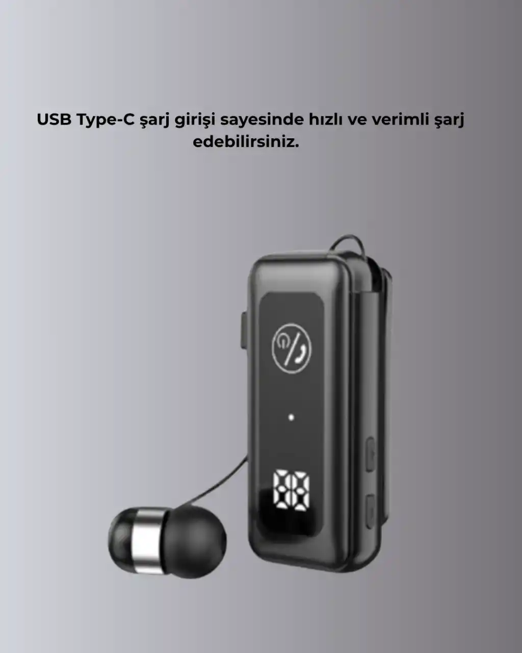 Bu Bluetooth 5.2 kulaklık, teknolojik özellikleri stil sahibi bir şekille sunar. Dijital ekran, titreşimli bildirim, hafıza kartı ve makara mekanizması şıklığı işlevsellikle buluşturur. Aynı anda iki cihaza bağlanabilme ve otomatik geçiş özellikleri sayesinde çok yönlü kullanım sağlar.20 saatlik pil performansı ve hızlı şarj desteğiyle uzun süre mobil özgürlük sunar. Garnitür tarzındaki kablo yapısı makara sistemiyle birleşerek sade ve es bir görünüm oluşturur. Yaka klipsi, ortam içinde güvenli kullanım sağlar. Gürültü engelleme, HD ses kalitesi ve fonksiyon tuşlarıyla multimedya deneyiminizi kontrol altında tutmanızı sağlar.Modern kullanıcı profilleri için hem şık hem fonksiyonel bu kulaklık, güvenilir bağlantı, yüksek ses kalitesi ve kompakt yapısıyla öne çıkar.