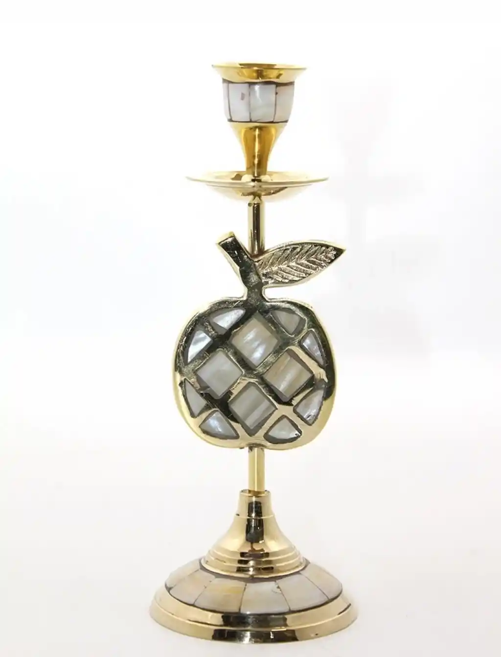 Pirinç Ve Sedef Karışımdan Üretilmiştir. Pirinç Sedefli Tekli Şamdan 20 Cm